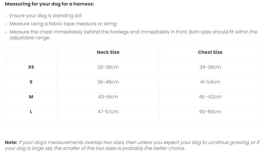 - Measure the chest immediately behind the forelegs and immediately in front. Both sizes should fit within the adjustable range.